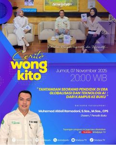 Palembang, 07 November 2025. Dalam lanskap pendidikan yang terus berubah akibat globalisasi dan kemajuan teknologi, peran seorang pendidik tidak lagi terbatas pada ruang kelas. Hal ini tercermin dalam kiprah Muhamad Afdoli Ramadoni, S.Sos., M.Sos., CPS, Dosen Fakultas Agama Islam Universitas Muhammadiyah Palembang, yang baru-baru ini tampil sebagai narasumber dalam program “Cerito Wong Kito” di Sriwijaya TV. Tema yang diangkat, “Peran Seorang Pendidik di Era Globalisasi dan Teknologi Artificial Intelligence: Dari Kampus ke Buku”, menjadi refleksi mendalam atas tantangan dan peluang yang dihadapi dunia pendidikan saat ini.